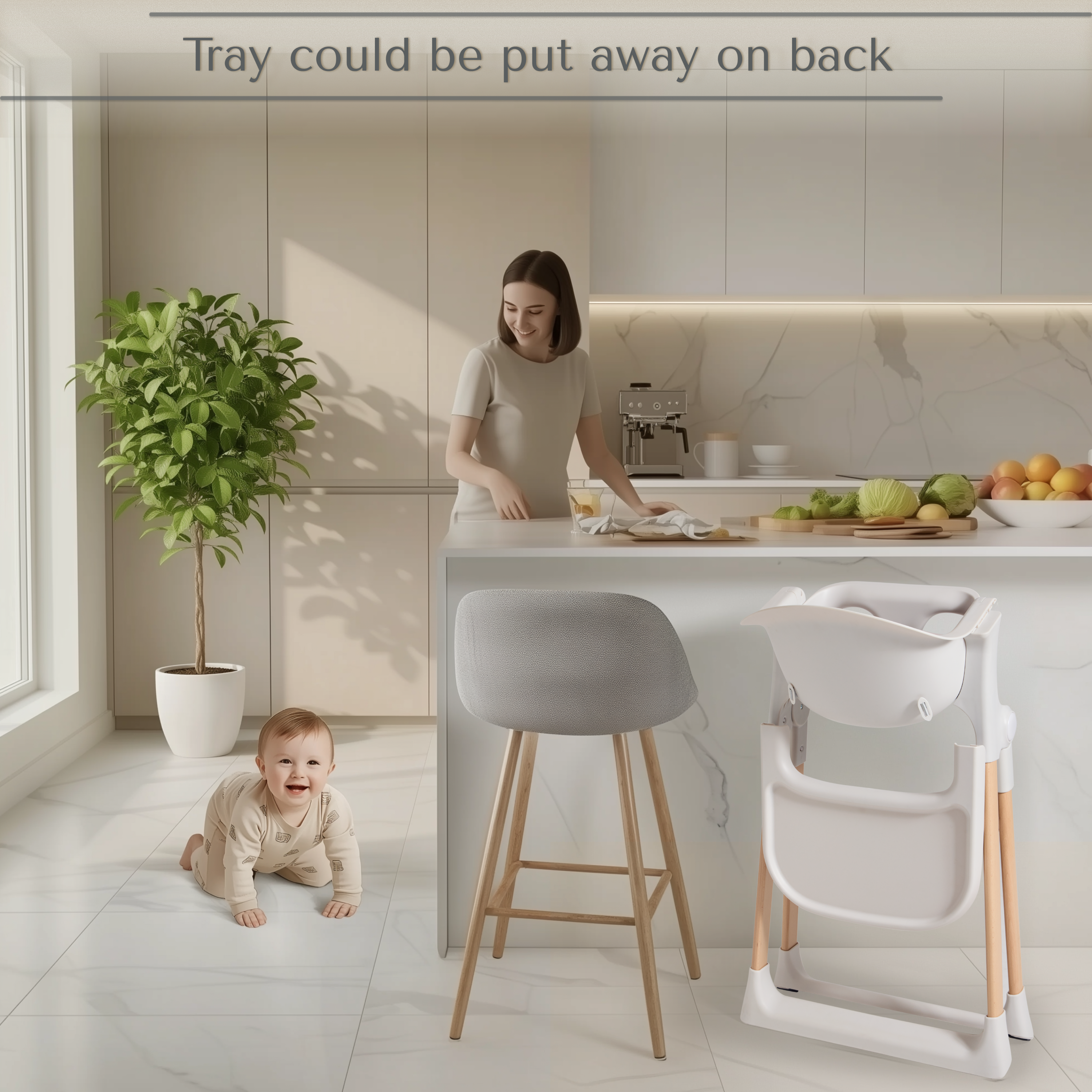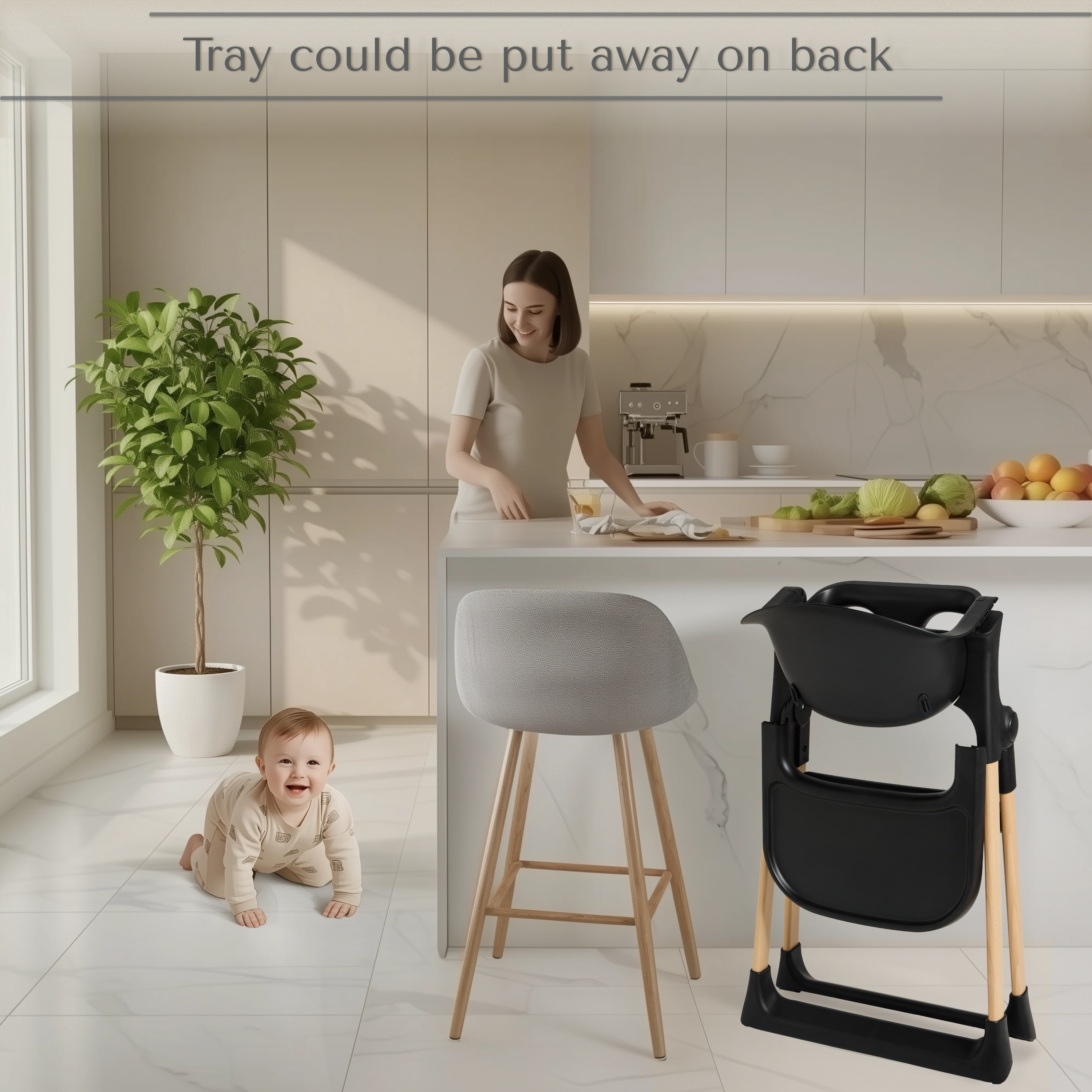 Perfect for modern family life, the foldable, space-saving design collapses quickly for easy storage, making it ideal for smaller homes and busy kitchens. When it’s time to eat, the removable feeding tray provides everyday convenience and neatly stores on the back of the chair to keep your space clutter free.
